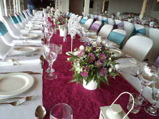 a Whimsical wedding with elements of the enchanted forest theme. Thousands of twinkling little fairy lights lit the tables on strands cascading from the roof. The tea light candles were hidden in wooden logs in between huge cylinder vases with beautiful Casablanca Lillie's playfully arranged in between the strands of fairy lights. The Lodge was beautifully decorated for this real time wedding with views on the Paternoster beach to die for.